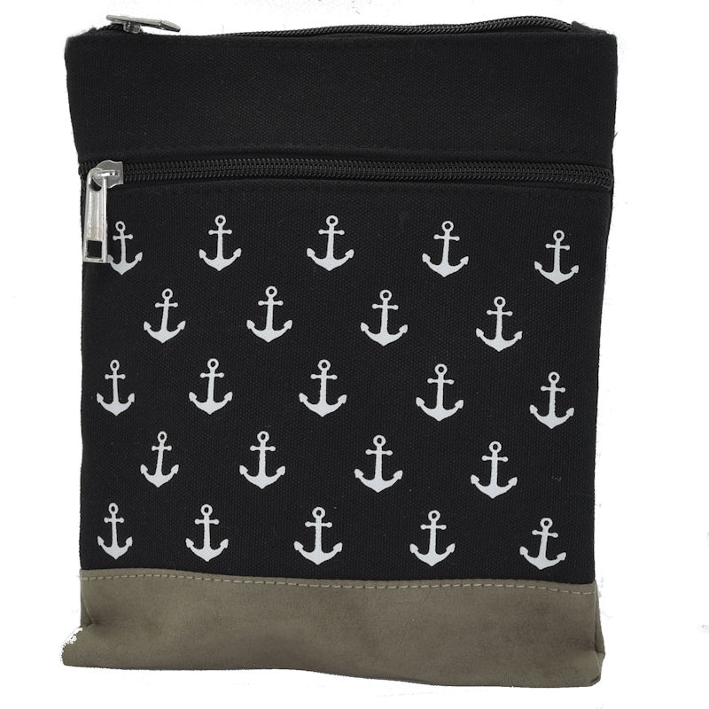 Handtasche Patchwork Canvas Crossbag Anker schwarz